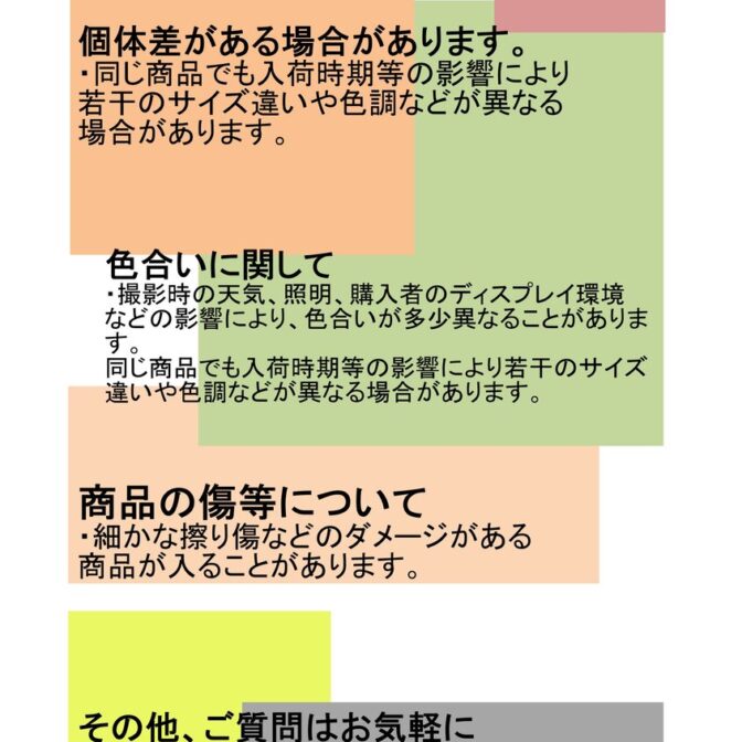 海外製品のため、サイズは不揃いになっております